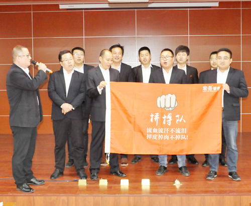 4月3日,完美集团营销誓师大会在营销中心热血开展! 全员参与,激情动员,完美销售精英们组成十个战队,并确立自己的队长、队名、队旗、队标及队呼。在大会上各战队“亮队型、展风彩、表决心”,队员们慷慨激昂的表态发言,点燃了营销人员的满腔热情。