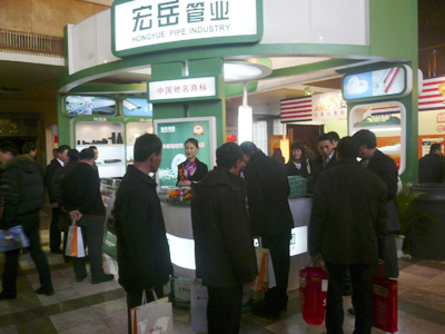 在完美PVCφ630和PEφ630等大口径管材样品前,很多客户纷纷驻足观看,并详细询问了产品的性能和应用情况,当了解到公司下一步还将重点增加大口径市政管道及燃气输送道开发后,大家对完美的发展速度和经营实力赞不绝口。