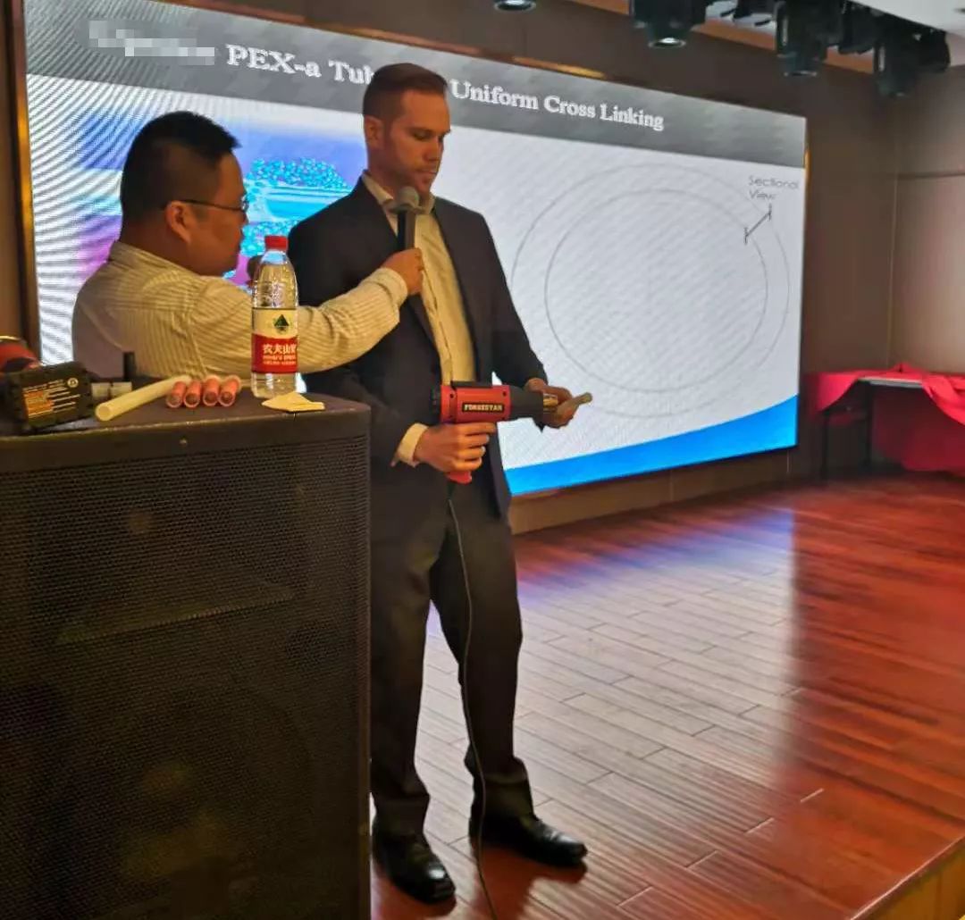 随后,完美集团美国技术总监JOHN先生为大家详尽介绍了PE-Xa"零"漏点给水系统的性能优势及该系统在美国乃至国际市场上的广泛应用情况,让参会人员对国际领先的产品系统与应用技术也增进更深的认识与了解。
