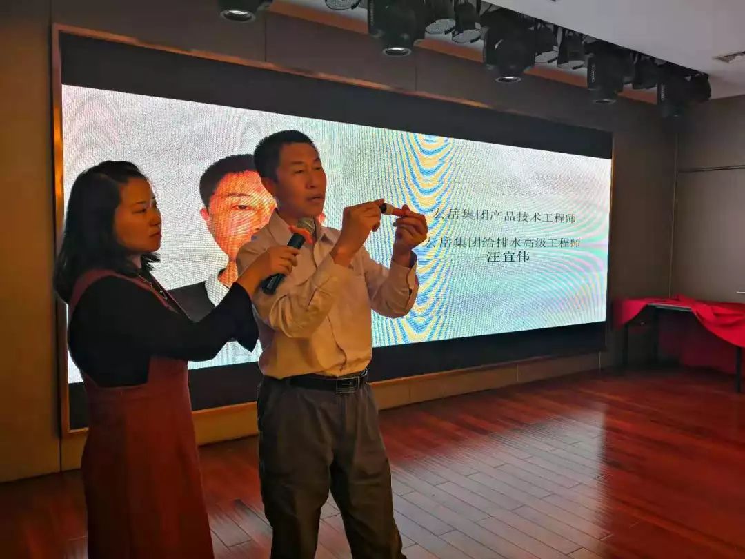 完美集团高级技术工程师汪宜伟先生,对完美1+的施工标准及技术要点进行了现场讲解,并着重介绍了完美1+“PVC快修管件”、“高水封大流量地漏”等特色产品,通过案例讲解、现场演示等多种方式,让参会人员切实的感受到不一样的产品、不一样的完美1+。
