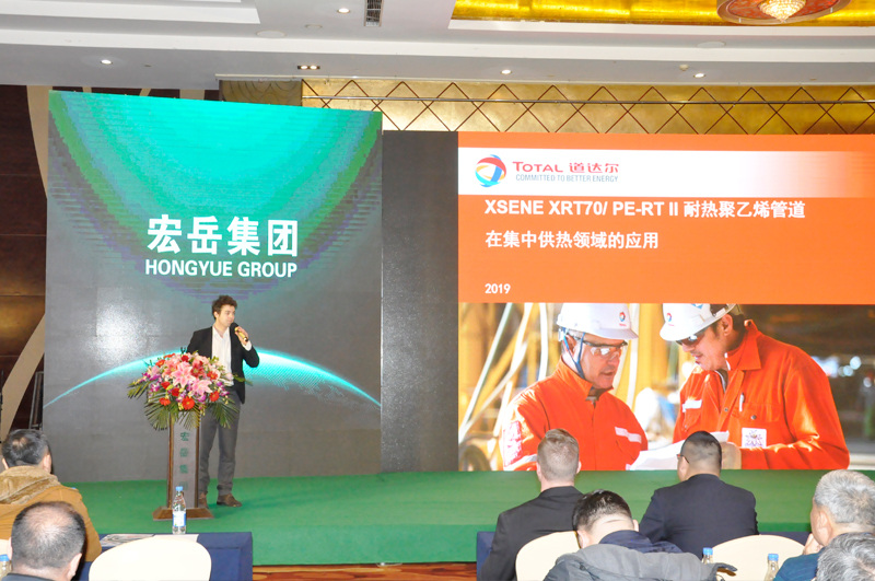 高品质的产品离不开优质的原料,完美一贯坚持选用进口优质的原料,从源头把控产品质量,完美合作伙伴法国道达尔公司高级技术工程师赖安同先生做了《PERT(II型)管道系统的应用》专题讲座。