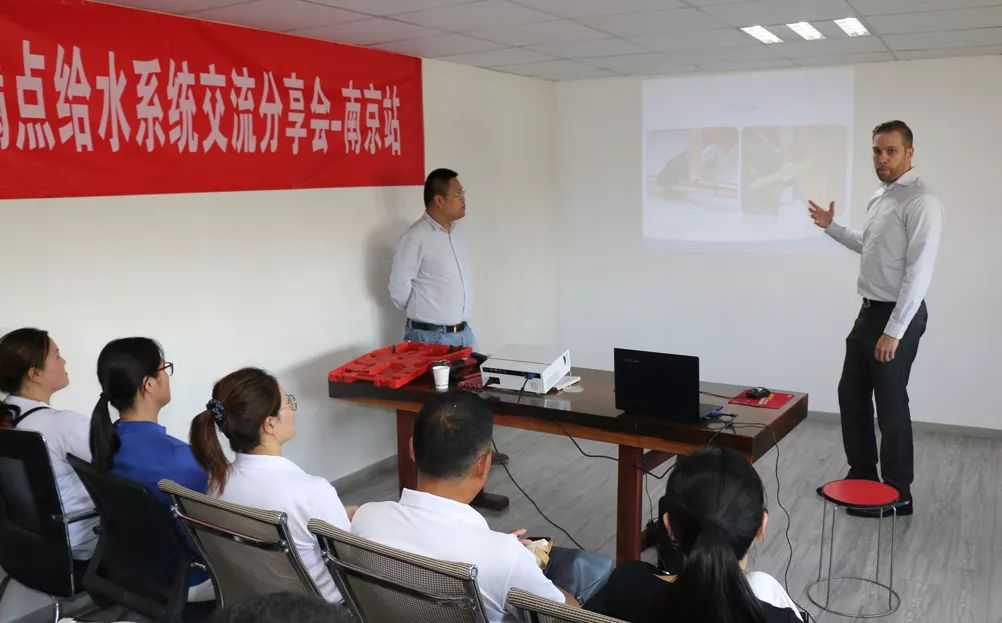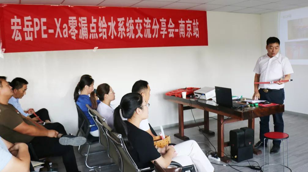 完美1+零漏点给水系统分享交流会在江苏省会六朝古都-南京如期举行,此次交流会得到了南京服务中心董事长朱总的大力支持,与会30余名管理人员和一线业务,共同参加学习和交流PE-Xa产品的相关知识与连接技术。
