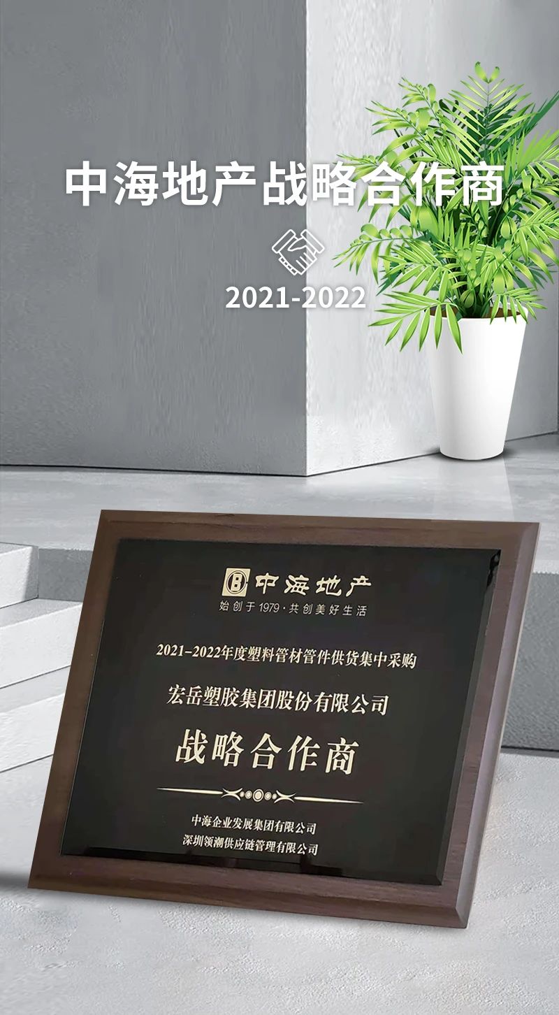 完美荣获中海地产2021-2022年度塑料管材管件供货集中采购战略合作商。